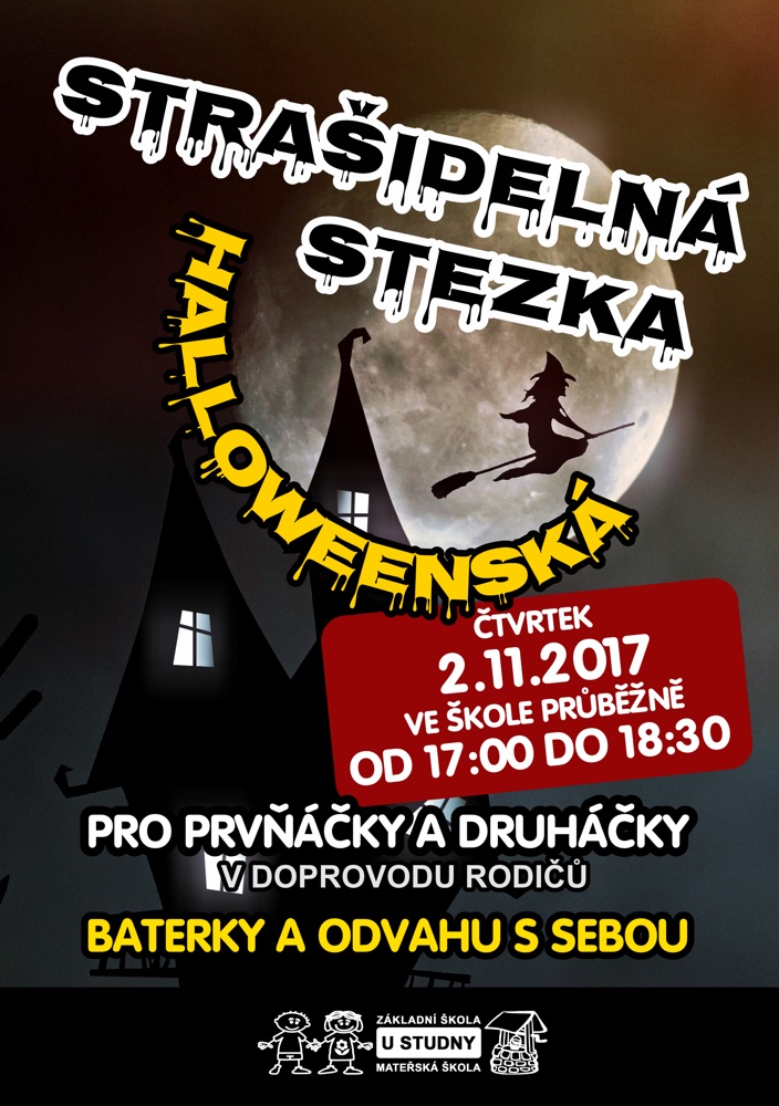 Ve čtvrtek 2.11.2017 od 17:00 do 18:30 (můžete chodit pruběžně v tomto čase) máme pro naše nejmenší žáky (prvnáčky a druháčky) připravenou strašidelnou stezku. Doporučujeme doprovod rodičů a baterku. Samozřejmě se mohou zapojit i starší žáci ...