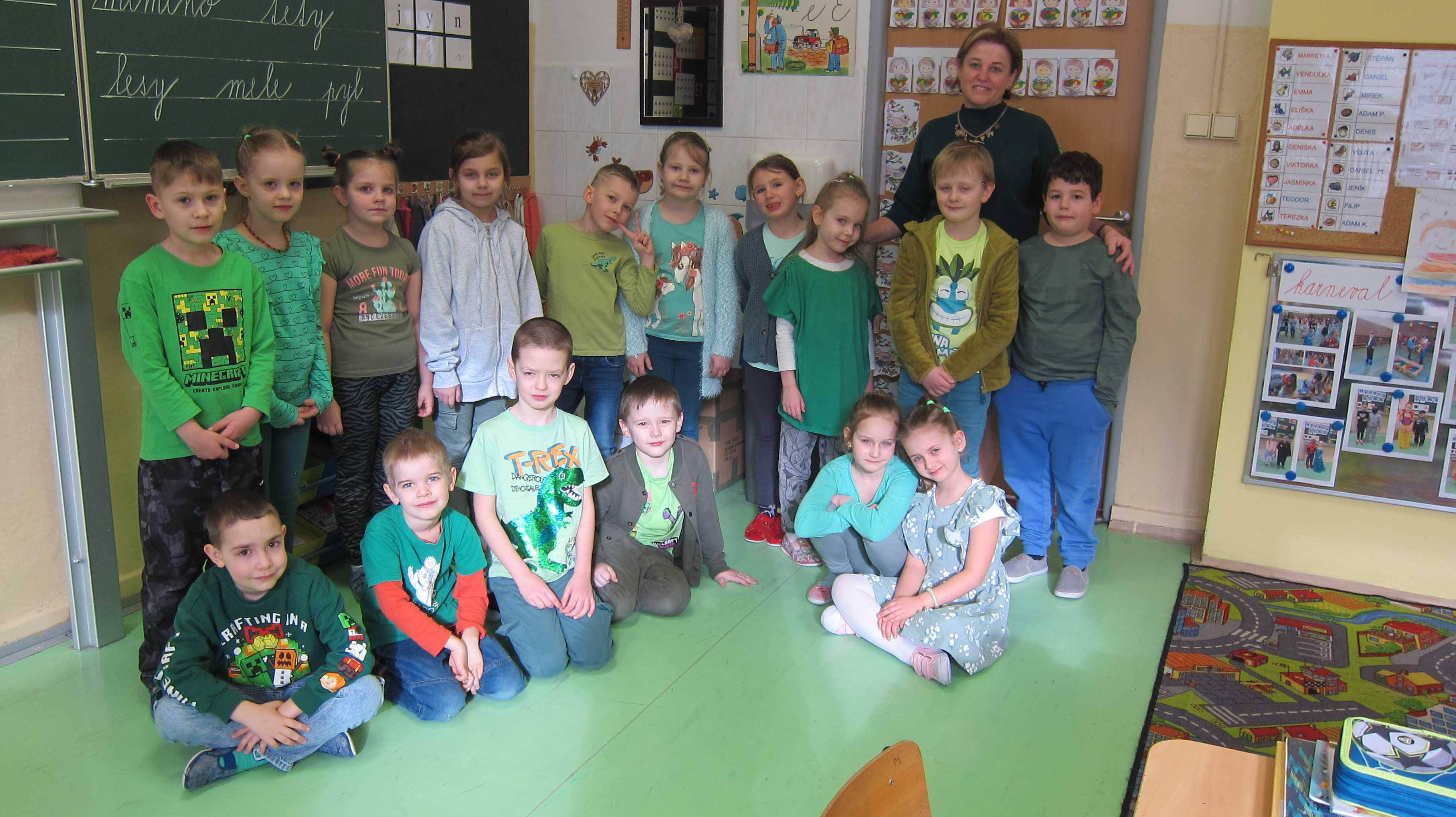 To byl ale krásně barevný měsíc! Jarní květiny, slepičky, včelky, hyacinty…………a barevný týden. I barvami svého oblečení jsme se chystali na jaro. Jakými? Modrou, červenou, zelenou, černou i žlutou. V prvouce jsme zaseli řeřichu a sledovali jsme, jak roste, zkoumali jsme stavbu těla hyacintu. V pátek 22.3. jsme se šli definitivně rozloučit se zimou a prošli jsme se do lesoparku Dubina.