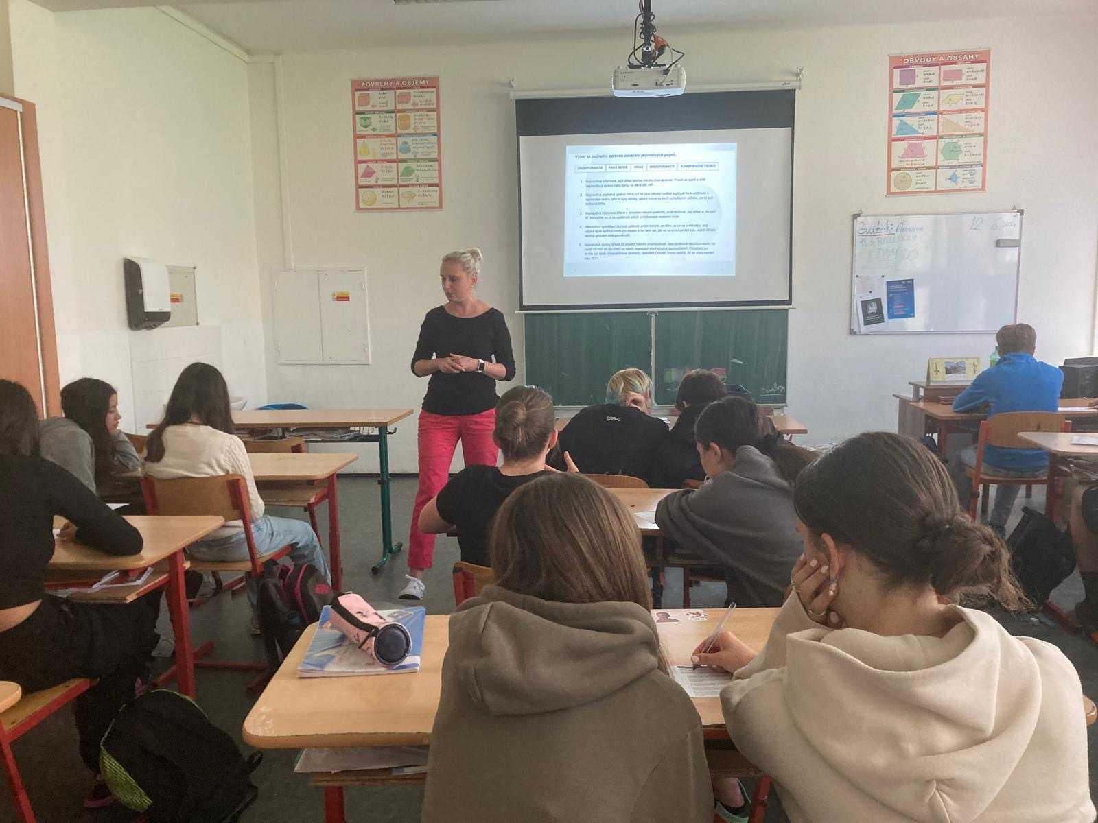 Besedy žáků 9. ročníku na téma fake news/dezinformace a nebezpečí online challenges, které na naší