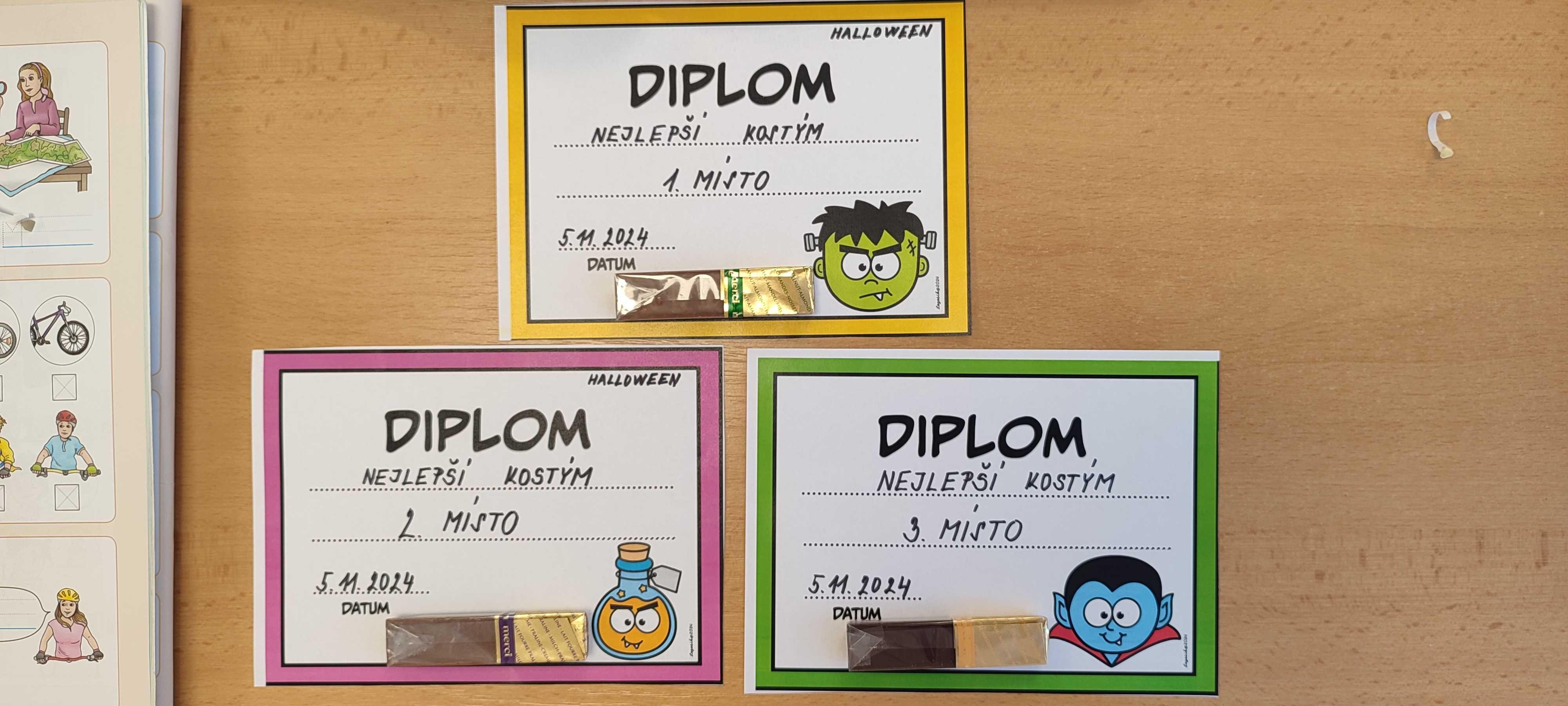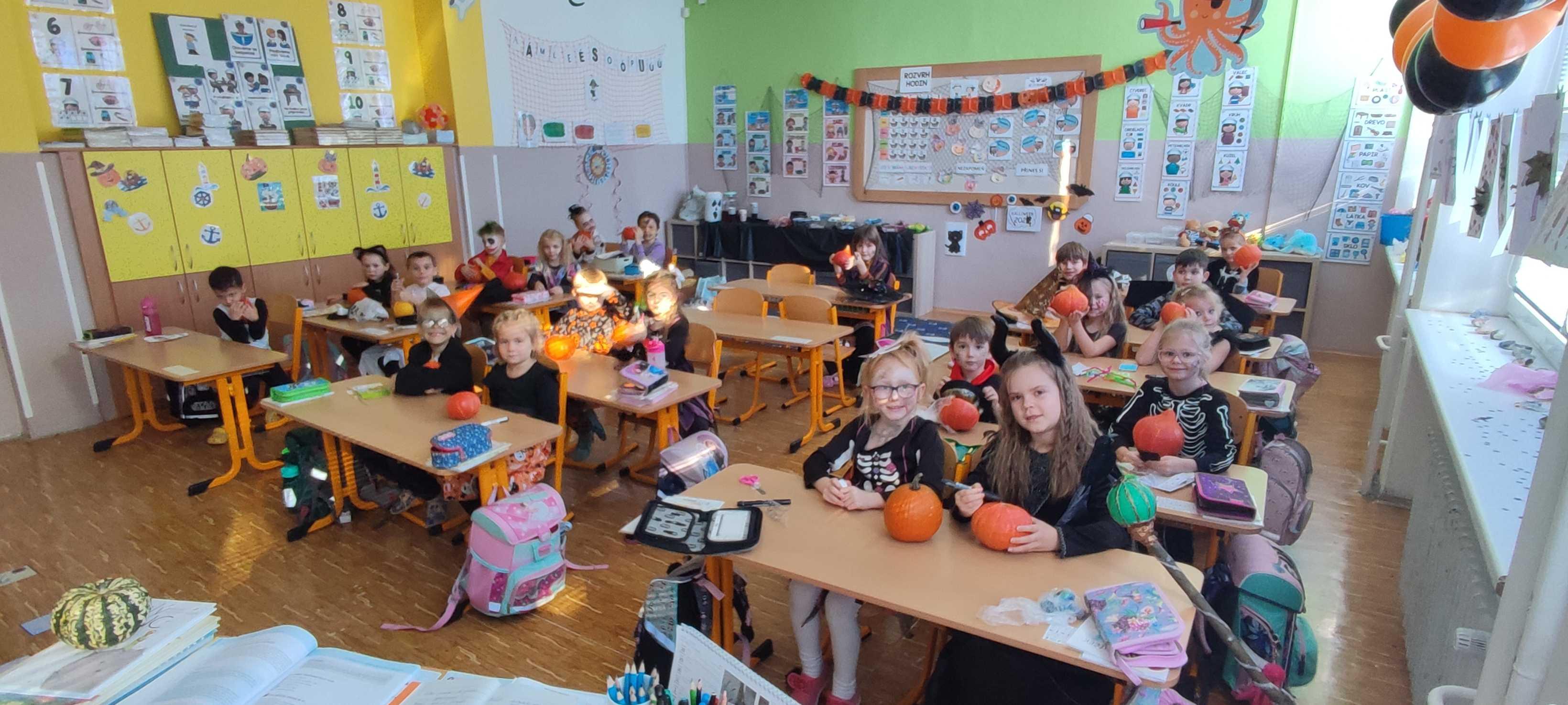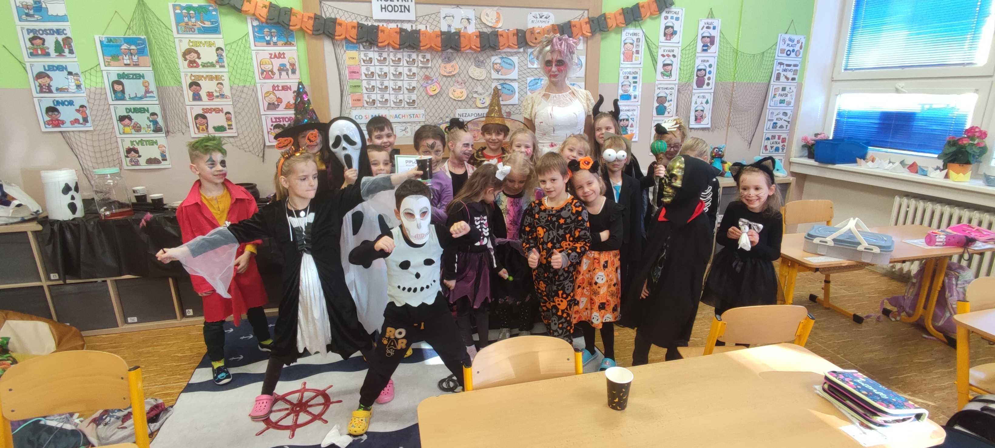 Dnešek jsme si náležitě užili. Prožili jsme halloweenské učení a následovala Halloween party. Děti byly opravdu štědře přichystané, nejen pohoštěním. Práci si daly i s přípravou kostýmů, z nichž se hlasovalo a nejlepší tři byly oceněny.