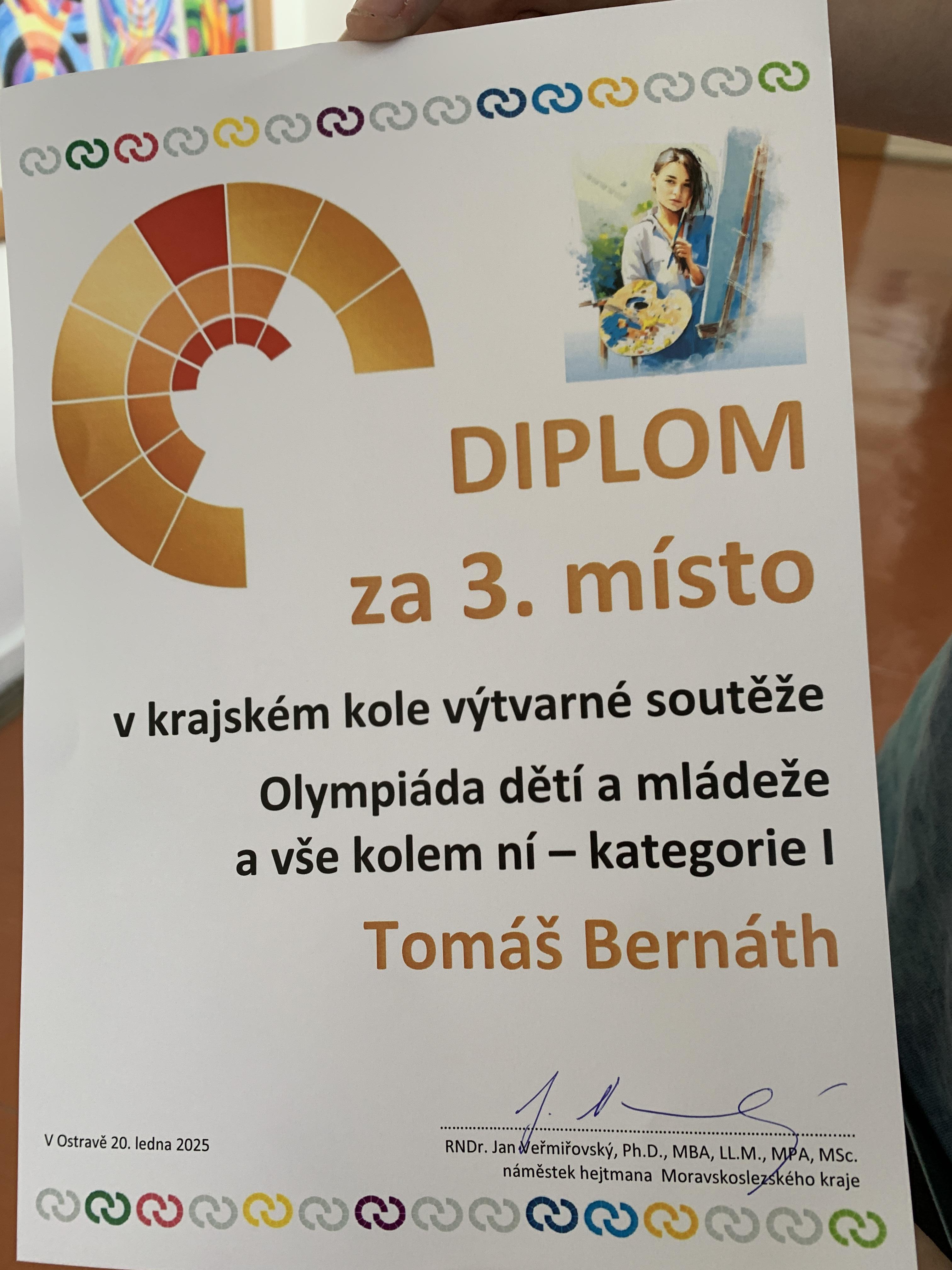 Gratulujeme Tomáši Bernáthovi k 3. místu v krajském kole výtvarné soutěže Olympiády dětí a mládeže!