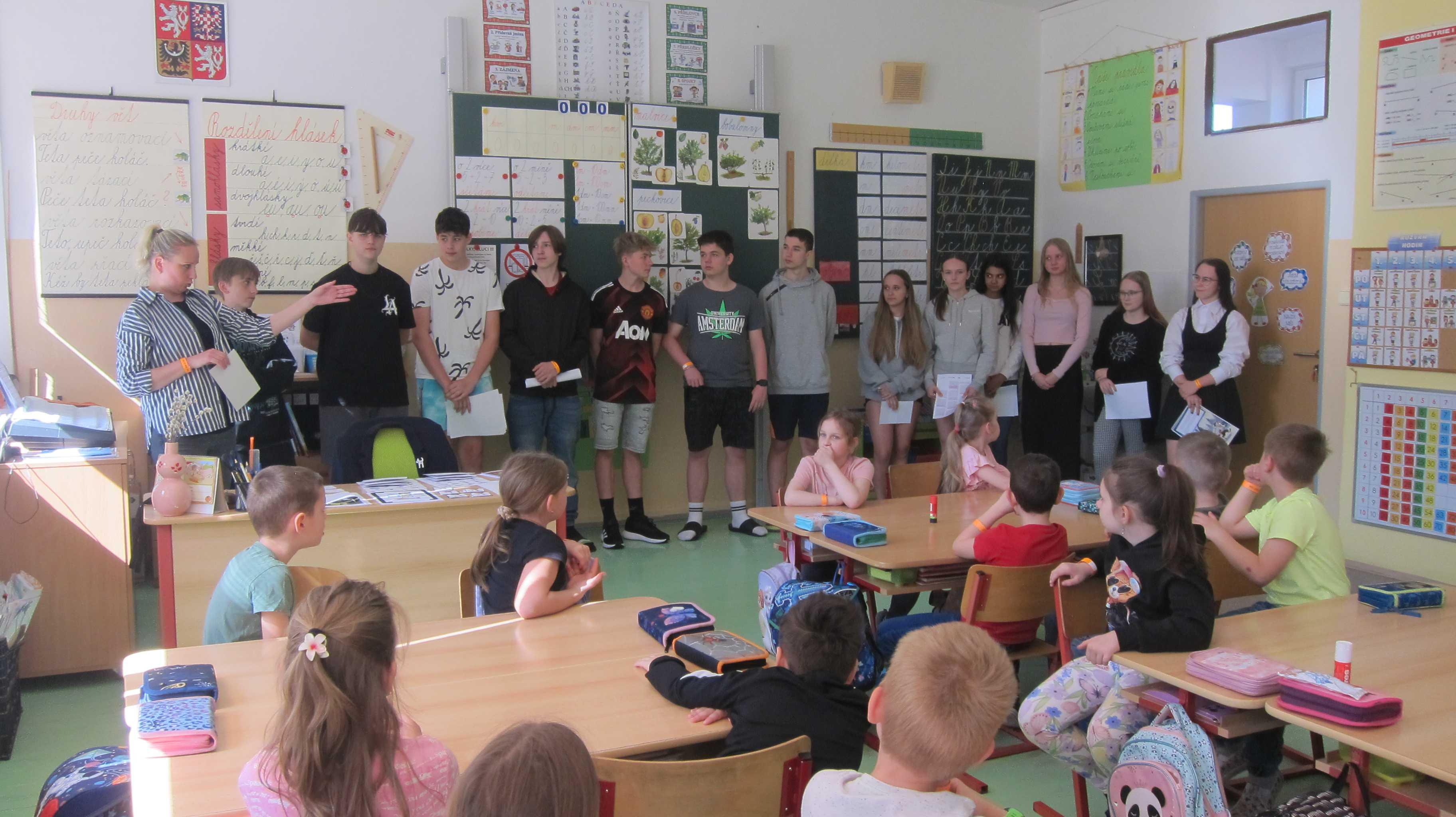 30.4. jsme se pak věnovali dni offline. Navštívili jsme knihovnu, kde jsme na čtyřech stanovištích plnili různé úkoly – řešili hádanky, hráli pexeso, vyráběli si placky…… Pak jsme společně s deváťáky hráli hry: Zlatá brána, Silné heslo, Najdi a slož fotografii, Co najdeme na internetu. Do výzvy „být offline“ se zapojili všichni žáci naší třídy. Budeme s napětím očekávat, až se potkáme 5.5., kdo vydržel.