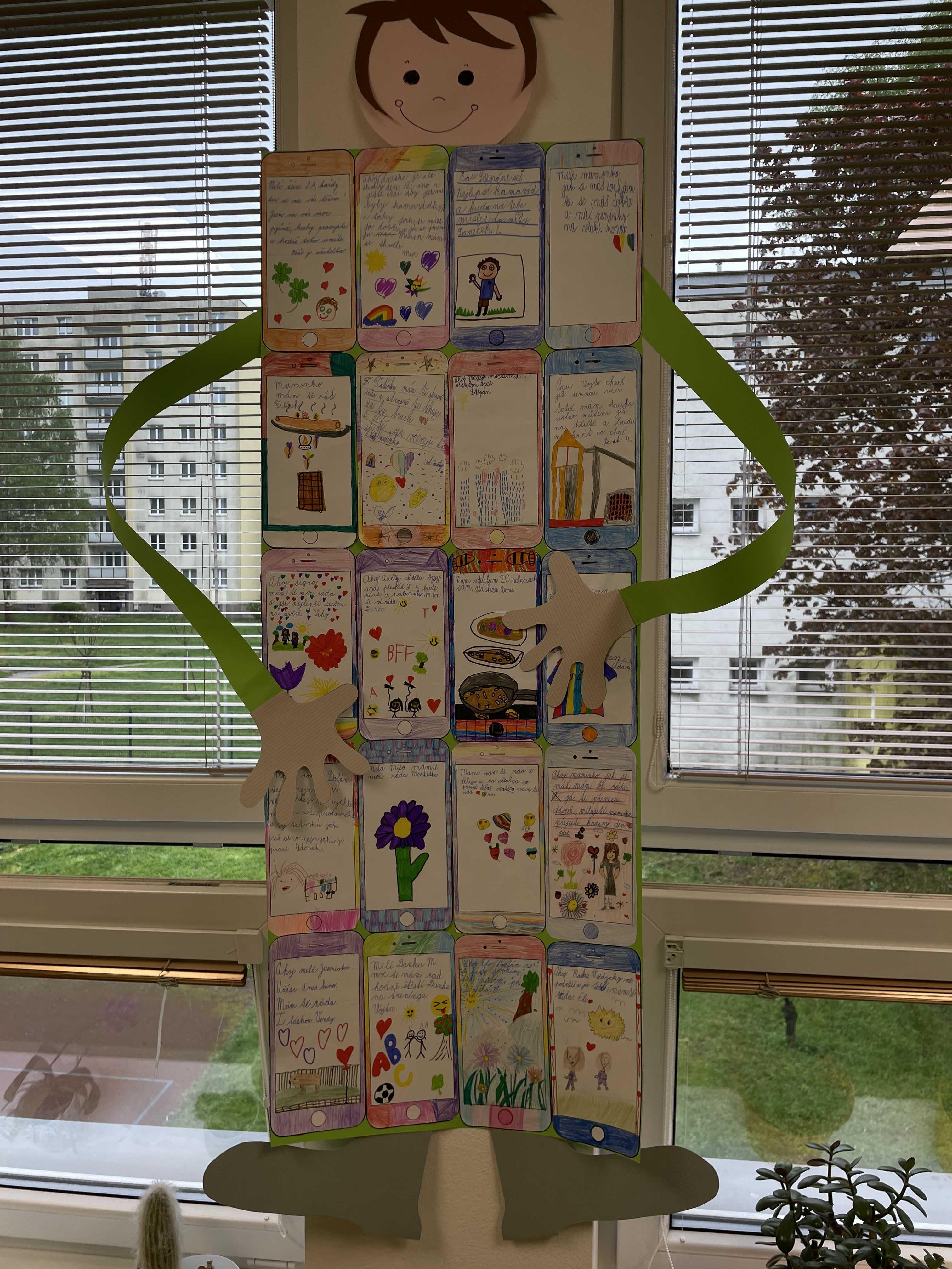Hráli jsme divadlo, hledali obrázky v komiksech, skládali obličeje, prodávali v obchodě a spoustu dalšího. 24.4.jsme navštívili retro místnost a poznávali věci dávné. Bylo to pro nás moc zajímavé. Další dny pokračovaly v duchu blížícího se dne offline – povídali jsme si o sociálních sítích, zveřejňování příspěvků a o jejich sdílení. Vyrobili jsme si také panáka Mobilníka z mobilů plných hezkých přání.